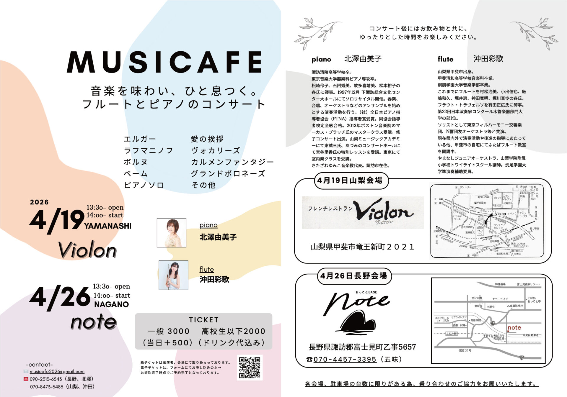 2026.4/26 フルートとピアノのコンサートMUSICAFE開催決定!